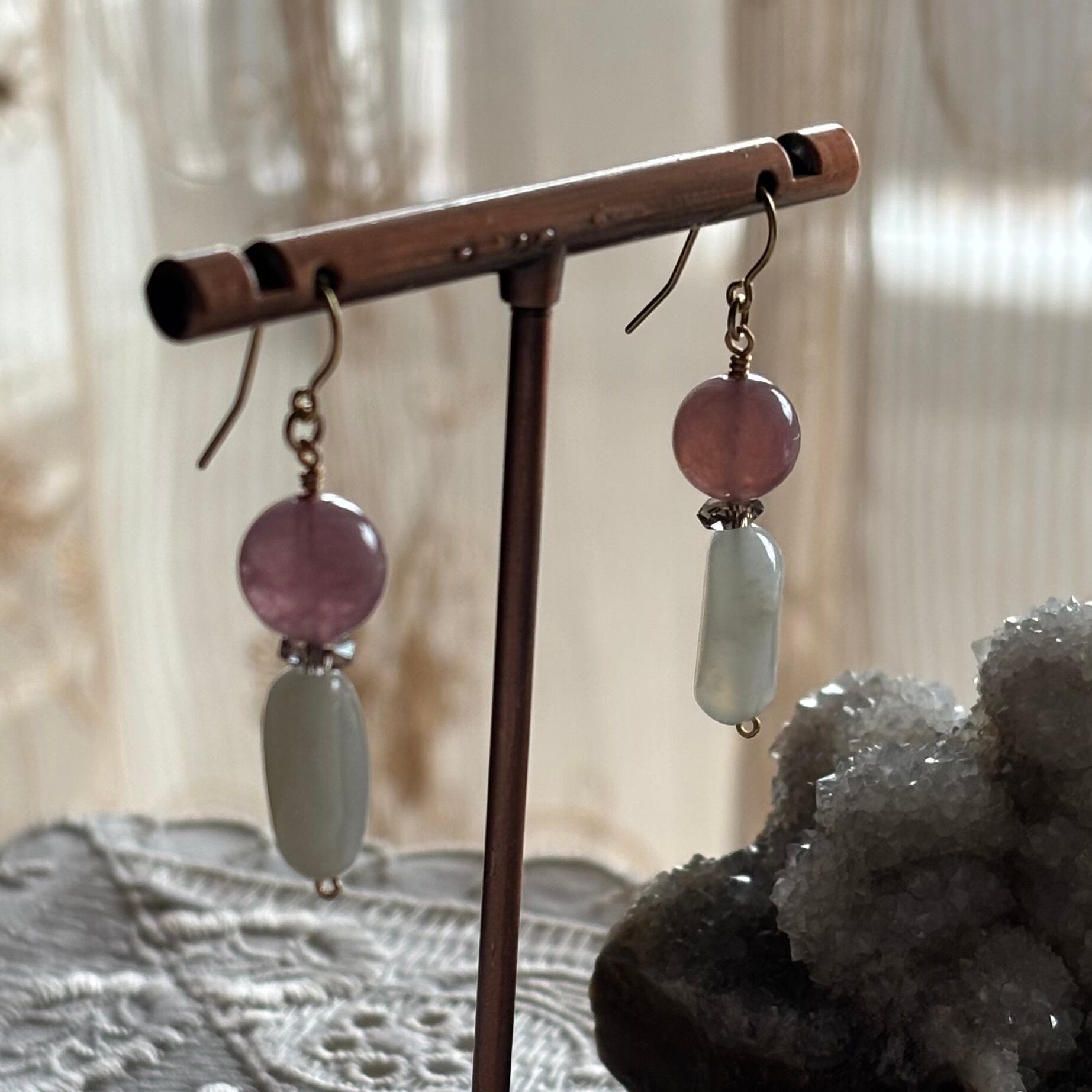 パープルローズクォーツとムーンストーンのピアス