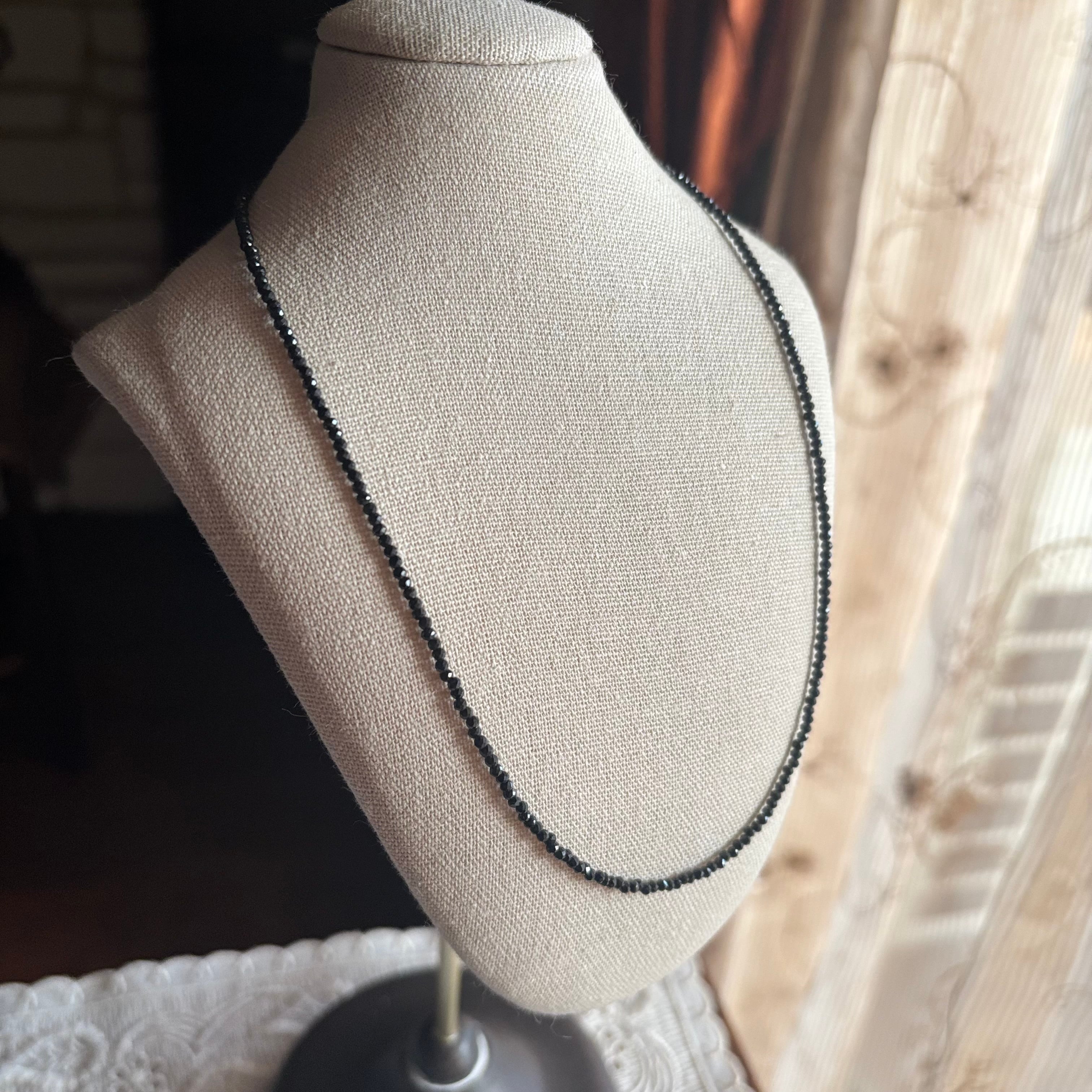 直径2mmの小粒ビーズで、華奢なネックレスですがカットが入っているので輝きもあります。